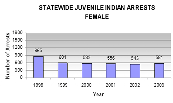 Table 13: Statewide Number of juvenile Indian arrests - female